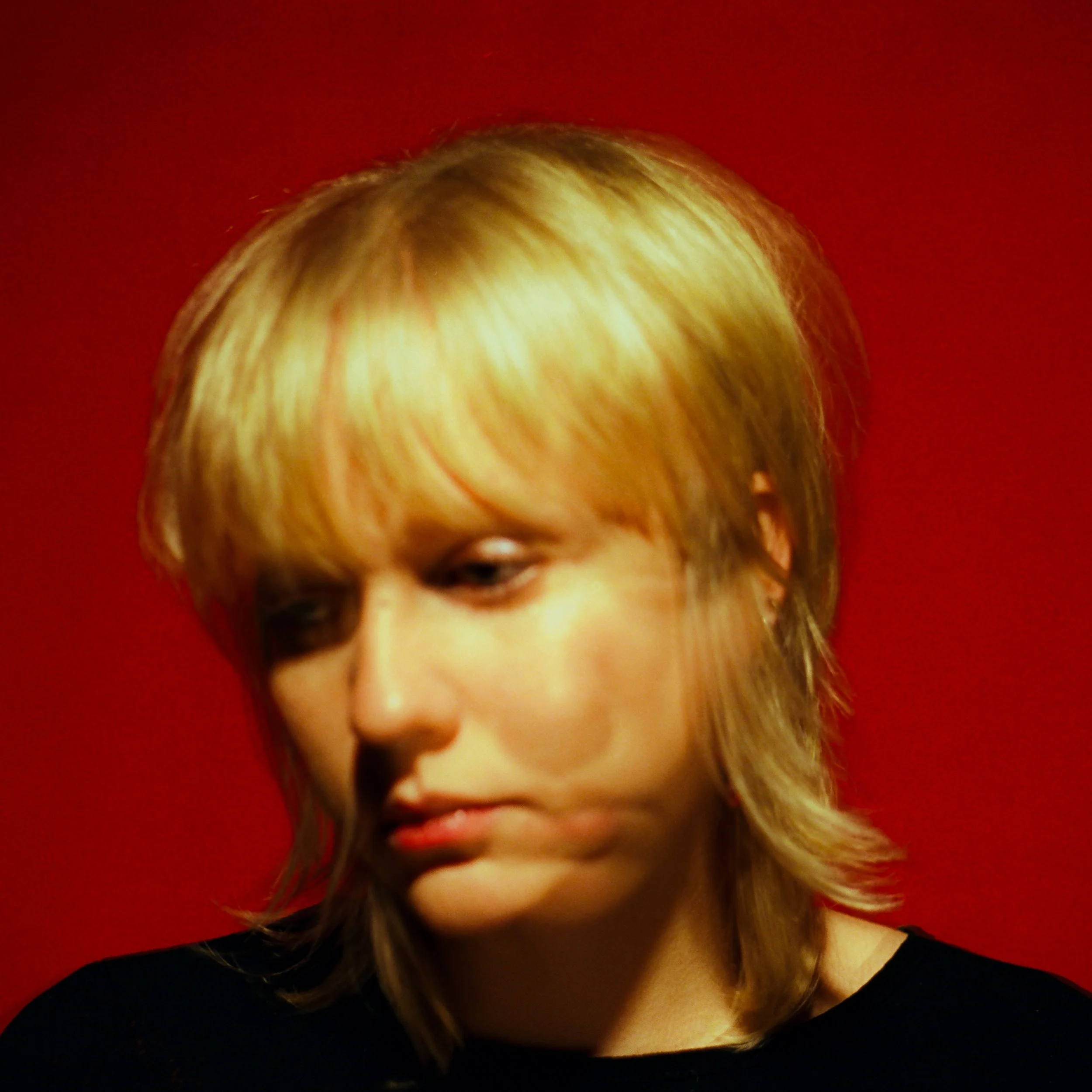 Red, saturated, confrontational. Double exposure layering contrast on contrast light against shadow, gaze against gaze.